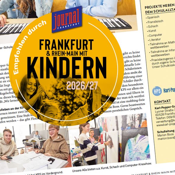 Das neue Sonderheft des Journal Frankfurt „Frankfurt & Rhein-Main mit Kindern“ liegt frisch am Kiosk – mit den besten Adressen aus den Bereichen „Bildung & Betreuung“, „Kultur & Freizeit“ und „Sport & Gesundheit“. Und mit einer klaren Empfehlung der KPS im Bereich Hochbegabung!
